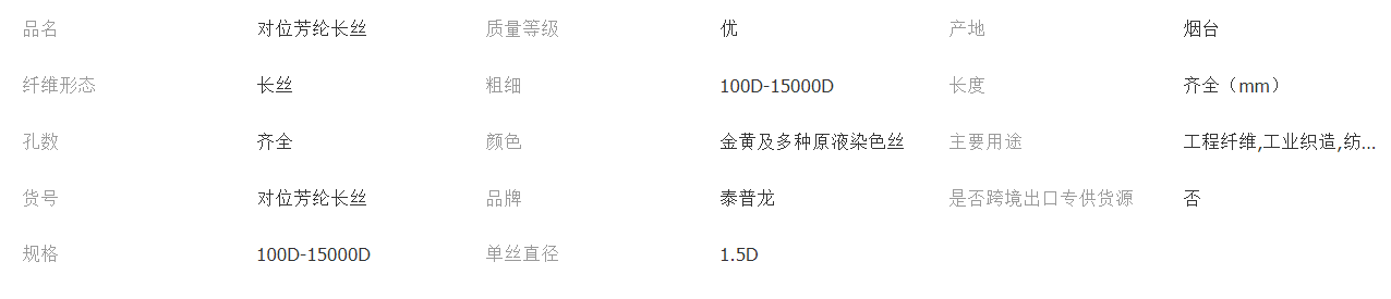 对位芳纶长丝芳纶1414 泰和新材国产 耐高温高强高膜芳纶