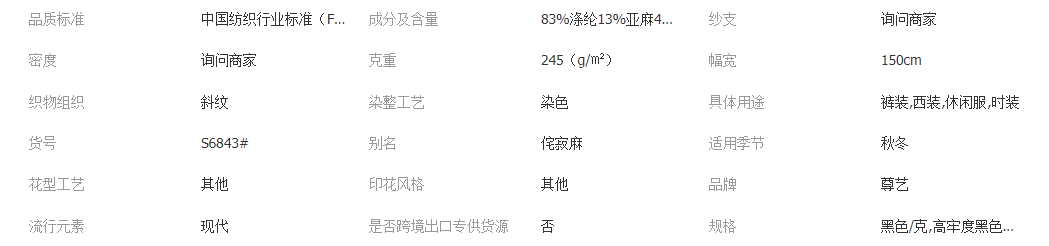 涤纶亚麻混纺弹力西装裤子面料仿棉麻侘寂风格设计师小众特色布料