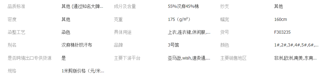 汉麻棉波浪纹面料 170克麻棉薄款上衣T恤棉麻混纺布料大麻针织布