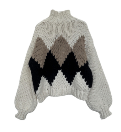 粗针织仿手打仿手工编织重工撞色慵懒休闲风针织套头衫毛衣