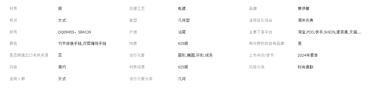 赛伊娜简约气质S925纯银缠绕蛇骨链竹节拼接链组合手链女百搭手饰
