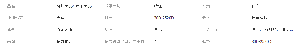 高强锦纶长丝锦纶丝66/ 尼龙丝66 30D-2520D强力9.5克旦耐磨性强