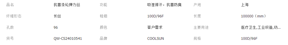 厂家供应COOLSUN 抗菌防臭 吸湿排汗100D/96F 涤纶弹力丝 DTY