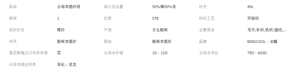 冰酷 云母凉感纱线 冰感丝 席梦思凉感床垫 牛仔冰丝面料