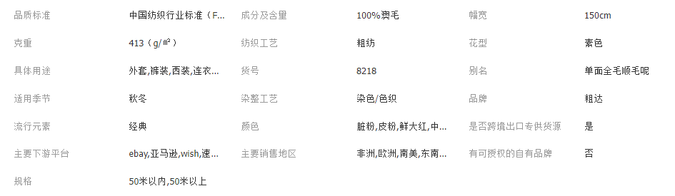 秋冬现货单面全毛顺毛呢面料 100%澳毛外套大衣布料羊毛呢面料