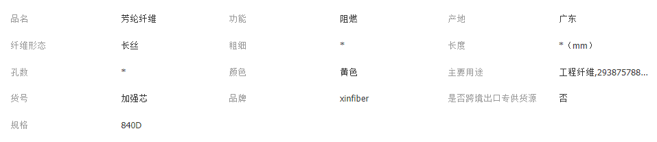 840DA级凯夫拉芳纶纤维丝防火阻燃高强纤维低延伸光缆光纤专用