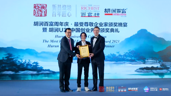 今年,胡润百富周年庆·最受尊敬企业家颁奖晚宴暨胡润U35中国创业先锋颁奖典礼于11月3日在北京盛大举行,这也是胡润百富一年一度颁发的最高规格的奖项,旨在表彰那些在商业领域取得杰出成就、为社会做出积极贡献的企业家。晚宴现场群英荟萃,数百位中国企业家、国内外商界领袖、社会名流及媒体人士出席了颁奖典礼,他们共同见证了“中国最受尊敬企业家”等多项重量级奖项的归属。经过激烈的角逐,比音勒芬集团的董事长谢秉政最终脱颖而出,荣获了“胡润产业领袖奖”。