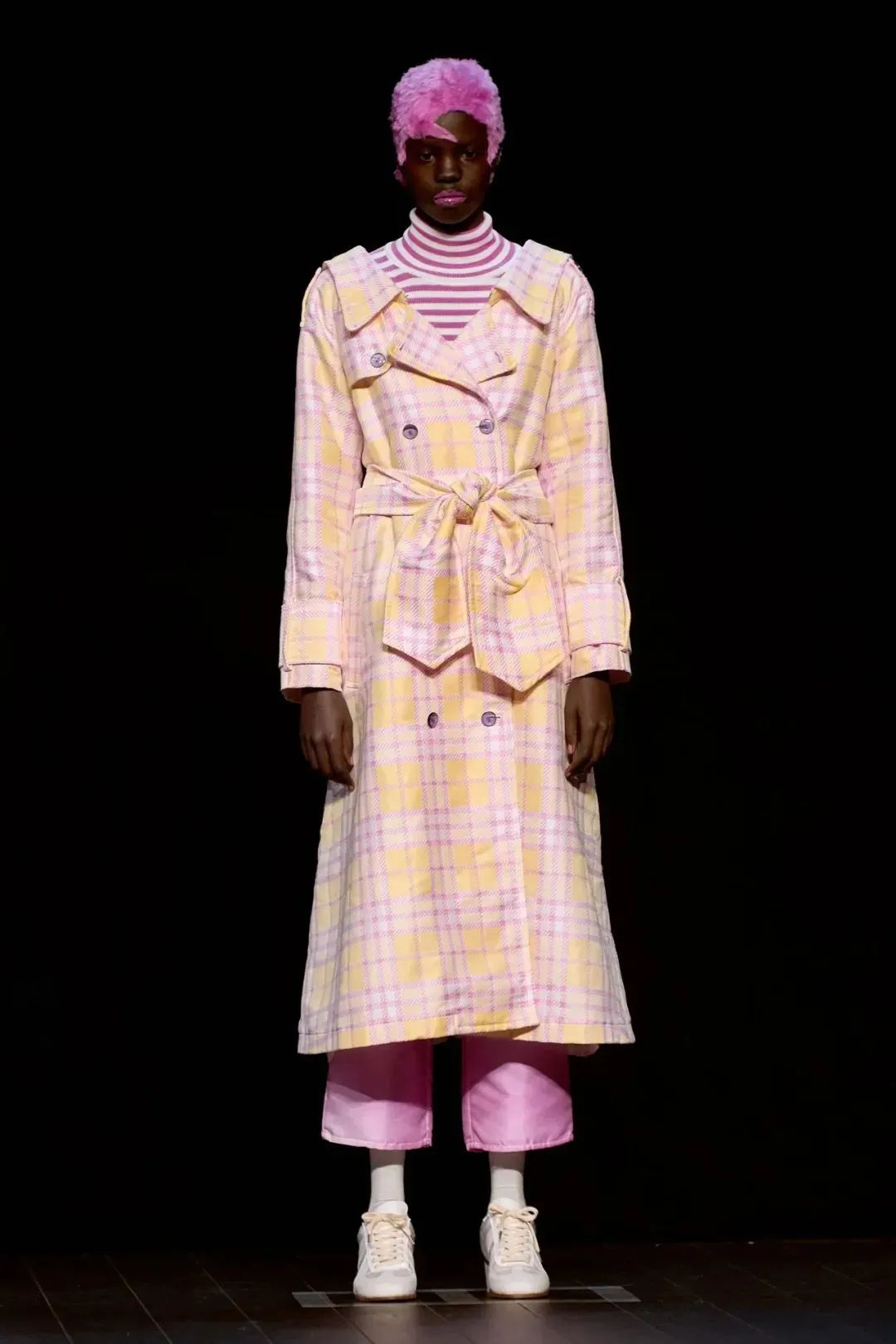 ANREALAGE 本季的主题是“INVISIBLE”。正如“隐形”一词所暗示的那样,该系列的主要材料是透明的PVC材料。不过,这些并不是普通的 PVC 材料,而是使用了对阳光中含有的紫外线产生反应的“光致变色材料”的 PVC 材料,这种材料也在 2023 年秋冬系列中推出。在发布中展示了简单的无色衣服在紫外线照射下如何变色,令观众大吃一惊。
