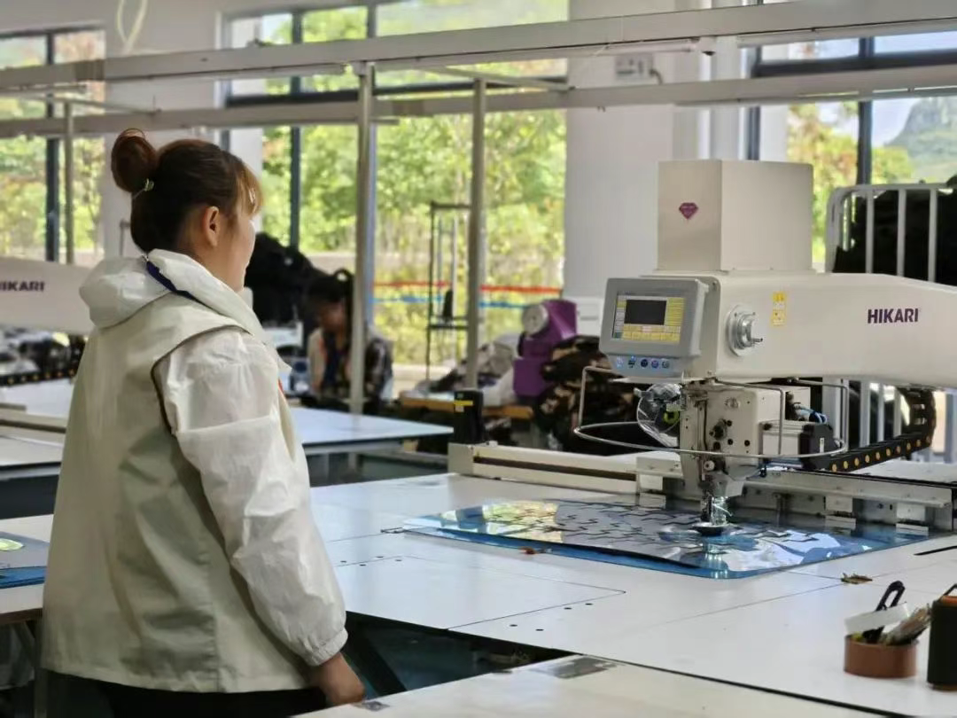 去年11月,贵州美鸿服饰有限公司正式在贵安新区湖潮乡“安家落户”,并投资四千万元建设服装智能生产项目,全力开展数字化生产。今年2月,该项目正式开工投产,自此开启了高效运转的新篇章。这家现代化智能服装制造企业,集设计、研发、生产、销售于一体,拥有约7000平方米的宽敞厂房。其产品线聚焦于运动休闲类及羽绒服产品,始终致力于为全球消费者提供高品质的时尚服装。