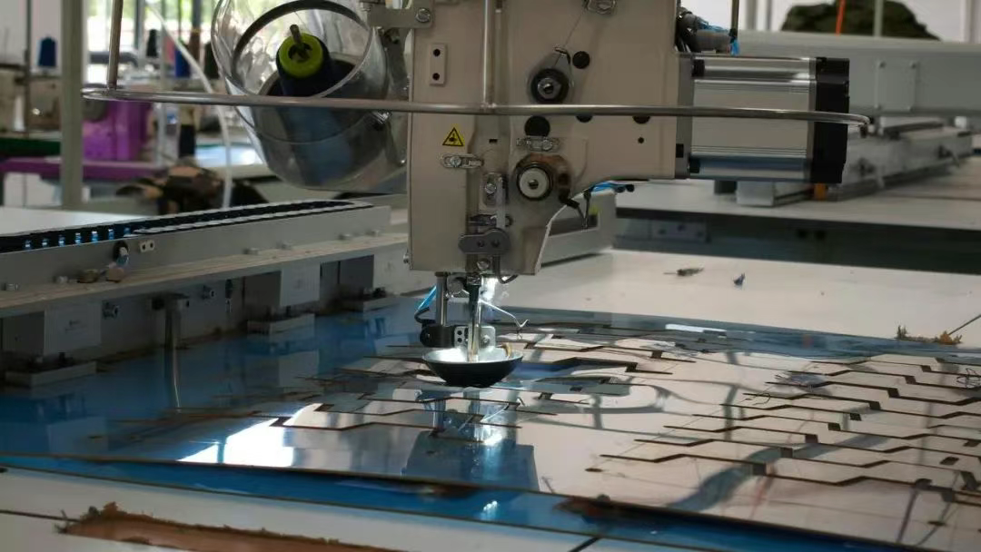 为了实现高效生产,厂房内配备了一系列智能化生产设施,如智能缝纫机组、自动化裁床、智能模板机、智能充绒机等。“智能化生产不仅节约了大量的人工成本,还显著提高了工艺水平和生产效率。就拿一台智能模板机来说,它的工效可以抵得上传统工艺十个人的工作量,大大提升了整体生产效能。”张开云自豪地介绍。
