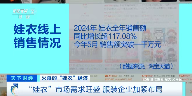 不仅是线下,线上娃衣销售也在持续增长。一家电商平台数据显示,2024年娃衣全年销售额同比增长超117.08%,今年5月销量出现暴涨,单月销售额突破千万元。娃衣市场的火热也吸引不少服装企业积极布局,在浙江桐乡,一家开了20多年的服装厂今年也走上了娃衣赛道。