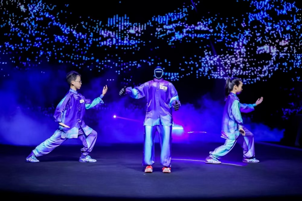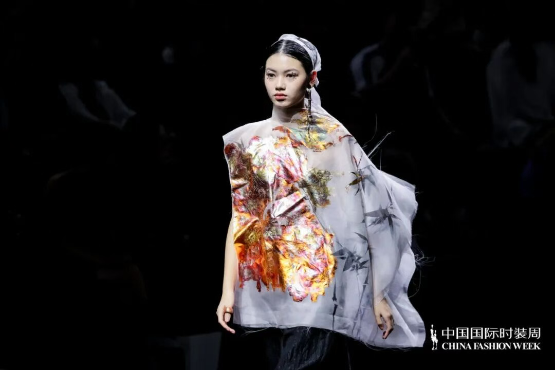 本季时装周最动人的篇章之一,莫过于可持续发展从口号走向诗意的过程。FUMENGKE用回收材料演绎五行哲学,将金木水火土的相生相克与绿色循环进行深度连接,以东方智慧为可持续时尚赋予更深层的文化内涵。衫也晴之的“椿”系列同样运用库存材料、回收材料,采用“减法”设计理念,通过自然、时间与生命的诗意叙事传递慢节奏与可持续理念。华峰千禧的“绿动纤峰”主题大秀开场由机器人与孩童共同演绎太极,寓意着科技与自然的和谐共生。随后登场的数字模特身着千禧品牌氨纶服饰,将面料的弹性、垂坠感等特性展现得淋漓尽致。这种展示本身就是一个可持续宣言:通过数字技术减少实物样本的制作,从源头上降低资源消耗。