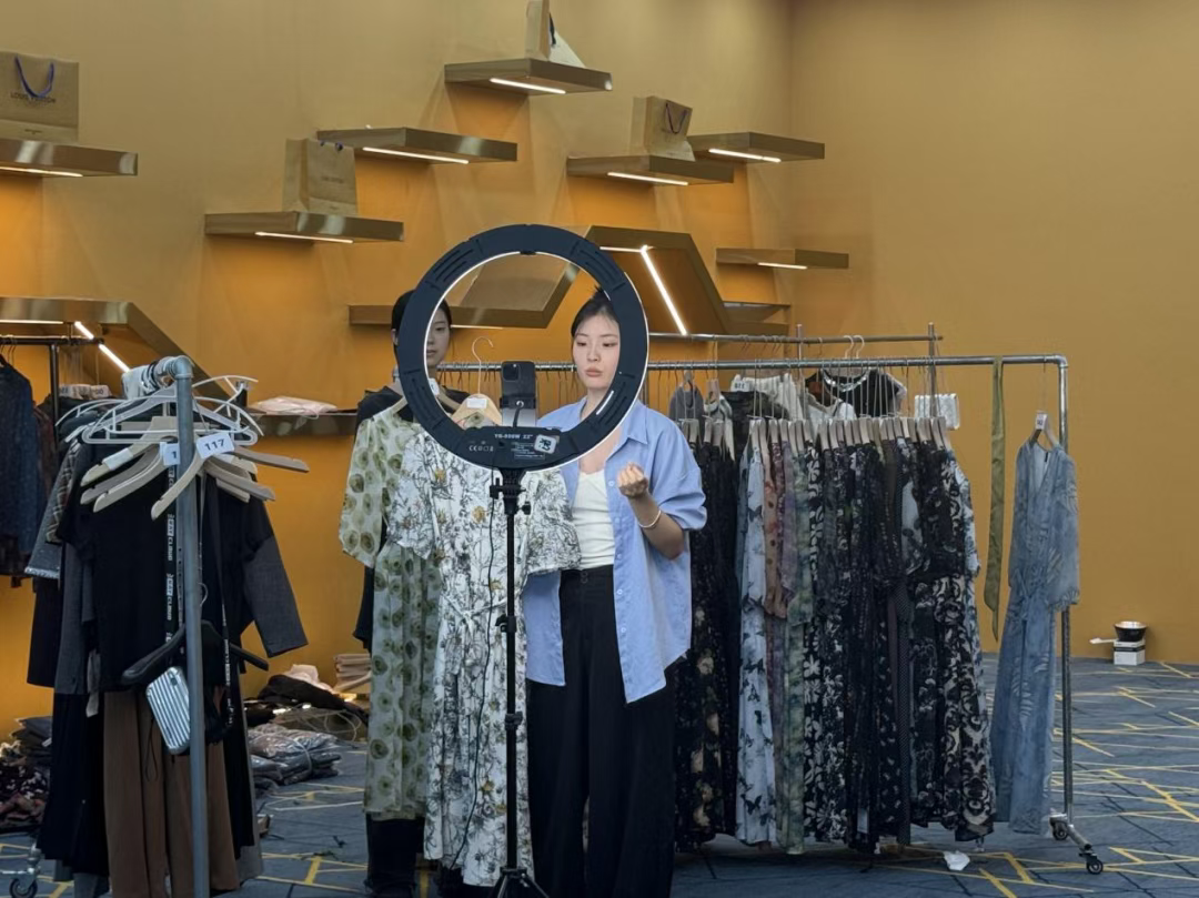 湖北莱依窕服饰有限公司,是服装电商城入驻企业之一。公司董事长熊飞翔介绍,“去年日均发货10万单,一年销售额达13亿元。今年新基地开工,建成后向20亿元销售额冲刺!”说话间,自动化打包机快速运转,一件件服装送上物流车,发往各地。截至目前,天门纺织服装类经营主体约7000家,电商平台注册店铺超1.3万家。天门已构建起“织造—面辅料—成衣加工—电商营销—跨境物流”的全链条体系。