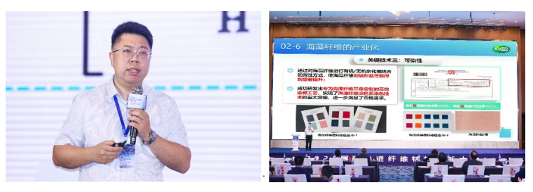 “海藻纤维是目前植物基再生纤维中,唯一不加任何化学成分和功能助剂就具有抑菌、阻燃、吸湿远红外等特性的纤维。”宫兆庆分享的海藻纤维引发关注。他指出,艾文生物在可纺性、可染性、面料牢度等关键技术领域实现突破,推出了与棉、莫代尔、粘胶、涤纶等多种纤维混纺的纱线产品,有助于医用卫生、美容护肤等高端领域的产品实现“健康+舒适”双在线。