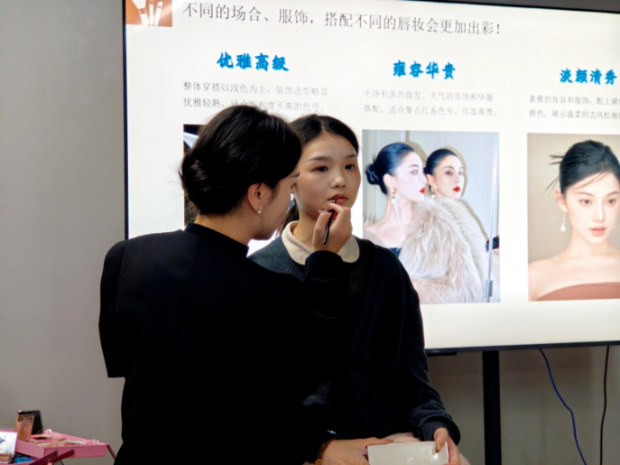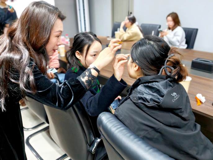 活动伊始,专业化妆讲师从先秦“粉白黛黑”的朴素妆容讲起,梳理汉唐、宋元、明清等不同时期的美妆文化演变,重点解析了妆容从“身份象征”到“审美表达”的功能转变。“古代女子以胭脂水粉修饰容颜,既是对生活的热爱,也是对场合的尊重;现代职场妆容同样如此,得体的妆容是职业态度的体现。”讲师结合历史案例与现代职场场景,让参与者在了解美妆文化底蕴的同时,深刻认识到职场妆容的重要性,为后续实操环节奠定了文化认知基础。