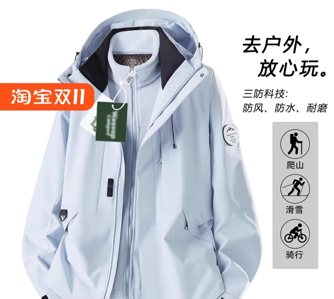 近两年来,冲锋衣算得上爆火速度最快、维持时间最长且不断自我更新的一款极致单品。时至今日,不仅中老年人爱穿,年轻人也很爱穿;不仅在户外场景中常见,在日常生活场景中也越来越常见;国际大牌、本土品牌、电商白牌大量推出冲锋衣单品,每一款都能匹配到精准用户,销量火爆。这样一款极致单品,是怎么火起来的?首要条件还是实用性。除了防风、防雨、抗寒的核心功能不断升级创新,近年来在结构上创新的“三合一”冲锋衣更是打开了新世界的大门。冲锋衣外壳+羽绒、抓绒内胆,通过隐形拉链实现多处可拆卸,实现一衣三穿,这份实用性的背后,体现的是服装行业的研发设计创新。户外功能性面料是面料研发设计的重要领域,也是与大众消费市场衔接最为紧密的核心领域;而服装可拆卸、一衣多穿的创新,则精准贴合了追求极致便捷性和性价比的消费需求。在早晚高峰的通勤地铁上,当你穿上冲锋衣,你就成功完成了一次“隐身”,不卷穿搭,不为穿衣而内耗,就这样淡淡地融入打工人的队伍。