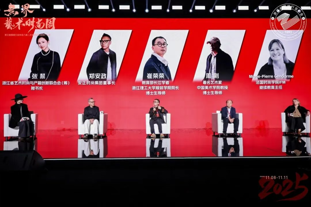 在“艺无界”主题对话环节,来自浙江大学、浙江理工大学、中国美术学院、法国时尚学院、万事利集团、安正时尚集团等专家学者,就“万物无界——东方美学的当代生命力”与“数境无界——时尚与艺术的数字孪生”等议题进行了深度探讨,思辨“无界”内核,探寻将东方美学转化为核心竞争力的路径,解锁数字技术赋能时尚艺术的无限可能。