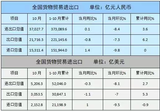 10月,纺织服装出口222.6亿美元,下降12.6%,环比下降8.8%,其中纺织品出口112.6亿美元,下降9.0%,环比下降5.9%,服装出口110亿美元,下降16%,环比下降11.6%。
