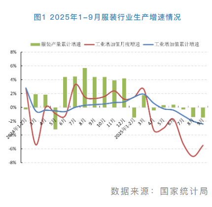 2025年以来,面对复杂多变的外部形势,我国服装行业经济运行严重承压,生产、出口、效益等主要指标降幅加深,投资增速放缓,内销保持温和增长。展望下阶段,国家提振消费政策持续发力显效,年末圣诞、元旦等消费旺季激发需求释放,将为行业经济修复创造条件和基础。但同时,国内外市场消费改善动力整体偏弱,地缘政治冲突、贸易摩擦风险等各种不稳定因素依旧存在,行业高质量发展仍面临较大压力。