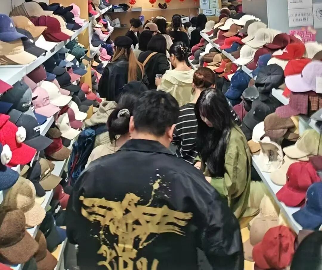隔壁的宛儿好物集直播基地内也热闹非凡,各色的围巾和帽子堆成了小山,店员们穿梭在货架间,不停地拆包、上架、打包。帽子围巾部副经理张姐正在给顾客找尺码,“这几天销量比平时翻了一倍还多,中午人最多的时候,店里挤得都走不开路。”“最火、最热的款式都还没来得及上架!”张姐指着地上堆放的一排排没来得及拆封的帽子说,这些都是昨天售空后,今早补货的爆款,还有不少新款没来得及拆包就开始卖了,基本到中午就售罄。“毛线帽、加绒贝雷帽、雷锋帽等都很受欢迎,羊羔毛渔夫帽卖得最火,单款能卖两百件!”几位年轻姑娘正围在连帽围巾的货架前试戴:“早上骑电瓶车上班的时候,风老是往领子里灌,这种款式能把脸和耳朵都护住,比较实用。”张姐说,连帽围巾是最受骑电瓶车的市民们喜爱的款式,“架子上空出来的几块位置,全是被买完了的爆款,要等明天才能补货了。”米娅米娅林店里,主播小董正在向直播间里的客人们介绍最新款的秋冬新品:“我们会把货发往周边城市,天气一冷,帽子围巾和加绒的衣服根本不愁销路,早上已经成交三十多单了。”市民陈阿姨正在翻看着围巾的面料,身边的购物筐里已经满满当当放了一堆衣物。“这些可一点也不多!”她掐着手指给记者算了一下,“我们两个老人加上两个孙女,一人两套保暖内衣和围巾是起码的。”