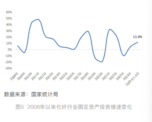 国家统计局数据显示,1-9月化纤行业固定资产投资额同比增加11.6%,较1-6月提升1个百分点(图5)。原有产能升级改造支撑固定资产投资增速提升,如部分企业加大生产装置自动化改造、旧线升级扩能改造、余热制冷等配套装置改造等投入。
