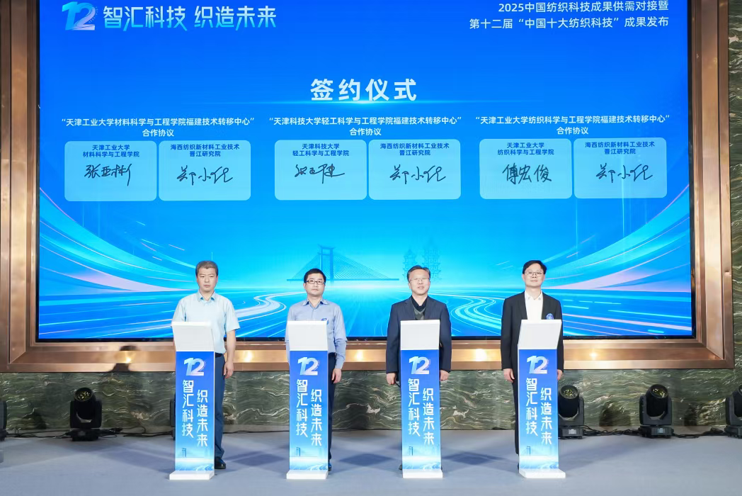 “中国十大纺织科技”系列活动作为行业重要的科技成果推广与转化平台,已连续9年在晋江举办。截至今年,活动累计征集并发布了超过200项纺织行业重大创新科技成果,促成30余项科技项目现场签约,累计签约金额逾5.5亿元,有效促进了纺织行业科技创新与产业发展的深度融合。