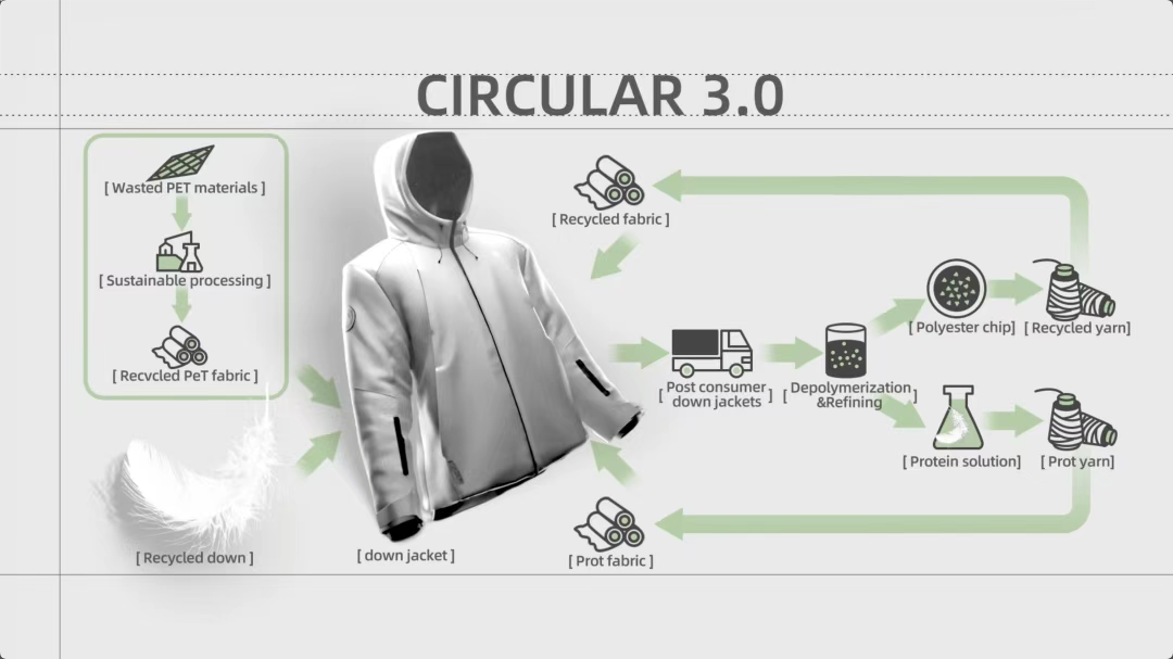 在构建智慧商业系统的同时,波司登将可持续发展内化为品牌的“绿色基因”,以实际行动践行“双碳”目标,打造品牌全球领导力的坚实支撑。集团构建了清晰的“1+3+X”ESG战略框架,明确了“2038年前实现运营环节净零排放”的碳目标。通过供应链ESG数字化管理平台系统性赋能行业伙伴绿色转型,研发CIRCULAR 3.0系列实现“从衣服到衣服(G2G)”闭环再生,推动100%羽绒通过负责任羽绒标准(RDS)认证,并建成行业首个“近零碳”示范工厂。波司登还创新性地将高管薪酬与气候绩效挂钩,确保ESG目标有效落地。一系列ESG创新实践和领先绩效,使波司登成为亚洲纺织服装行业中首家获得MSCI(明晟)ESG AAA最高评级的企业品牌,赢得了全球负责任投资者与消费者的深度信任。