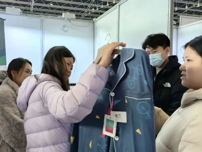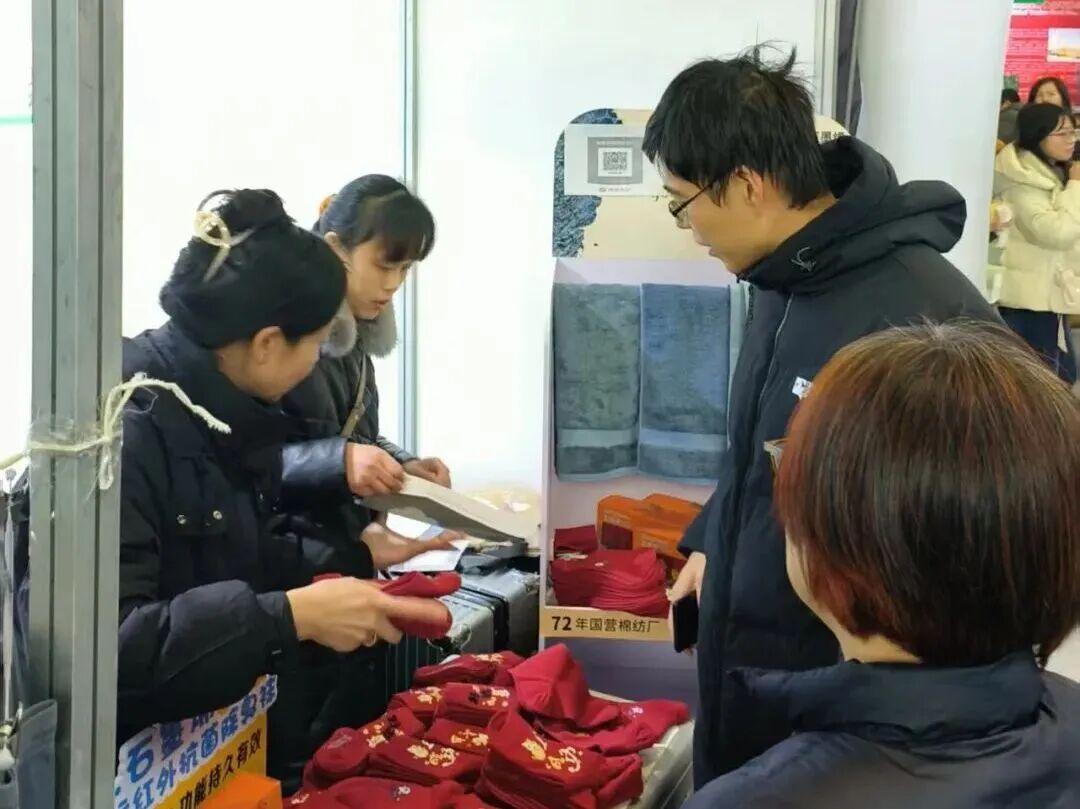 赵县展位内,河北金怡化纤有限公司的再生纤维凭借绿色环保优势获得专业人士关注,石家庄小熊服饰有限公司的婴童服饰则以可爱设计、安全材质吸引不少家长驻足咨询、购买。