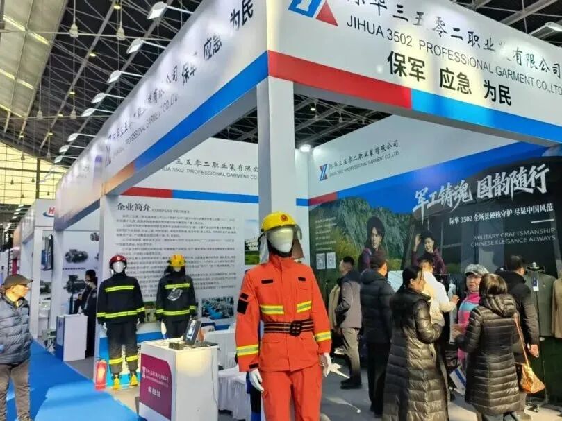 际华3502公司携冲锋衣、迷彩裤等多款户外服饰及应急防护服装参展,其中偏商务版型的冲锋衣因兼具实用性与时尚感,成为现场关注焦点。一位专程从北京赶来的客商已与该企业达成明确合作意向。