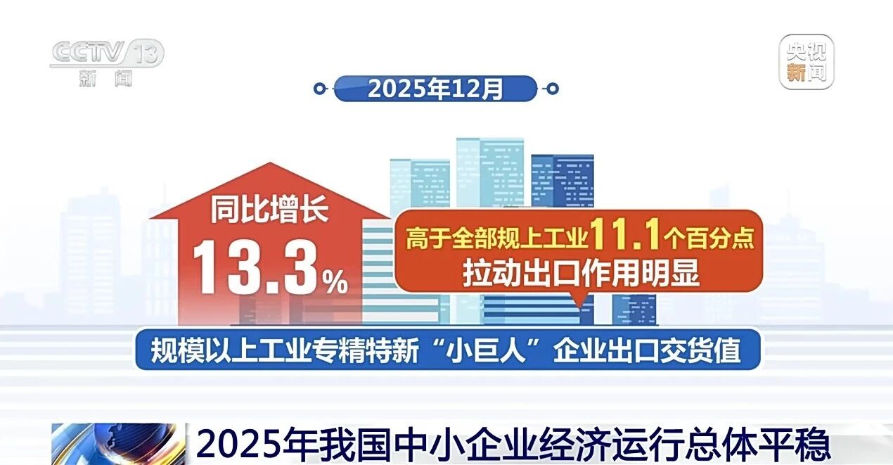 工业和信息化部数据显示,2025年我国中小企业经济运行总体平稳,展现出较强发展韧性,成为工业经济稳增长的重要支撑。