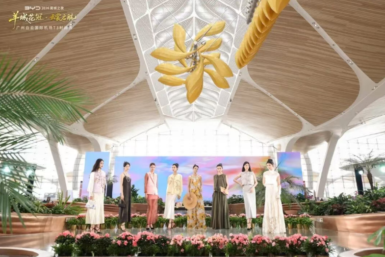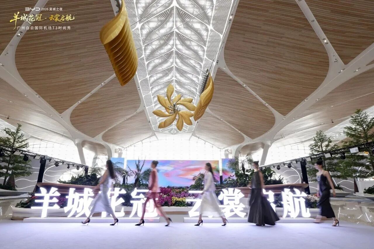 “十五五”开局之年,广州“英雄花开英雄城”系列活动持续推进,城市文化与时尚创意深度融合。T3时尚秀作为这一文化盛事在时尚领域的创新延伸,以“羊城花冠”为创意主线,秀场动线融合航空流线的速度感与几何美学,结合广州“花城”市花木棉花元素,寓意“风生水起”。活动紧扣“英雄花开英雄城”城市文化主题,将英雄精神、城市底蕴与时尚美学有机融合,通过情景化演绎与沉浸式展示,向全球旅客传递广州时尚产业的创新活力与广货品质底蕴,实现时尚表达、文化传播、品牌推广三重价值叠加,成为广州商旅文体健融合消费的标志性场景。