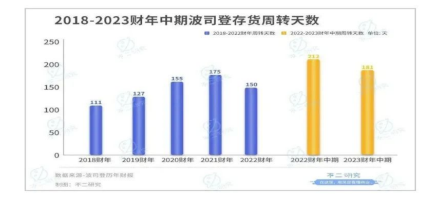 但羽绒服生意低迷是不争的事实,今年上半年,波司登的存货周转天数已经从2018年的111天增长到了181天,存货总额也达到了34.34亿元,整体周转效率大幅下降。反应到营收数据上更加直白。根据波司登财报数据显示,2020财年起,波司登的营收增速便开始逐渐下滑。